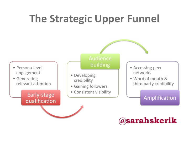 The strategic upper funnel is a crucial driver of success for a number of marketing initiatives, including demand gen, search and content marketing. Success in this quarter is predicated upon the brand building authentic and credible social presences and then fueling those presences with rich and useful content.